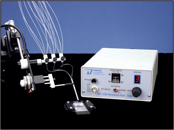 美国Warner公司生产的VC-77SP Fast-Step Perfusion System(多道快速步进程控灌流系统)是一台多道,快速,微量,精确,死体积几乎为零,程控给药系统。既可以手动控制,也可以用程序控制。是一台非常适合需要在不同的药物间快速转换的给药系统。